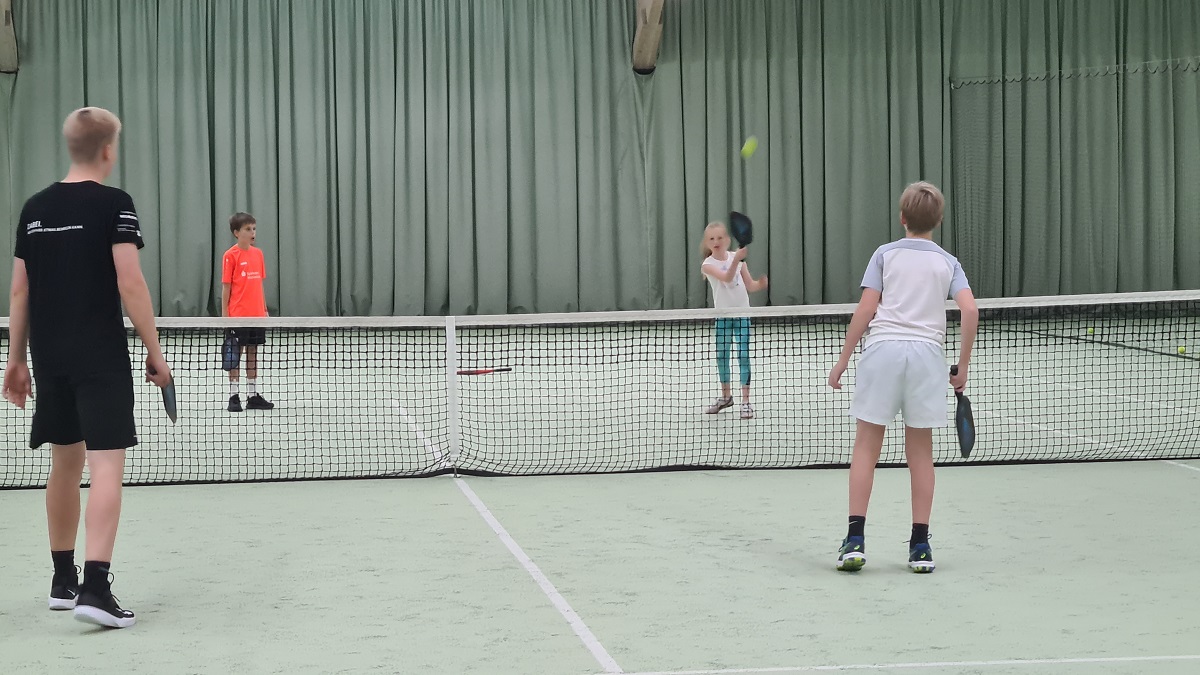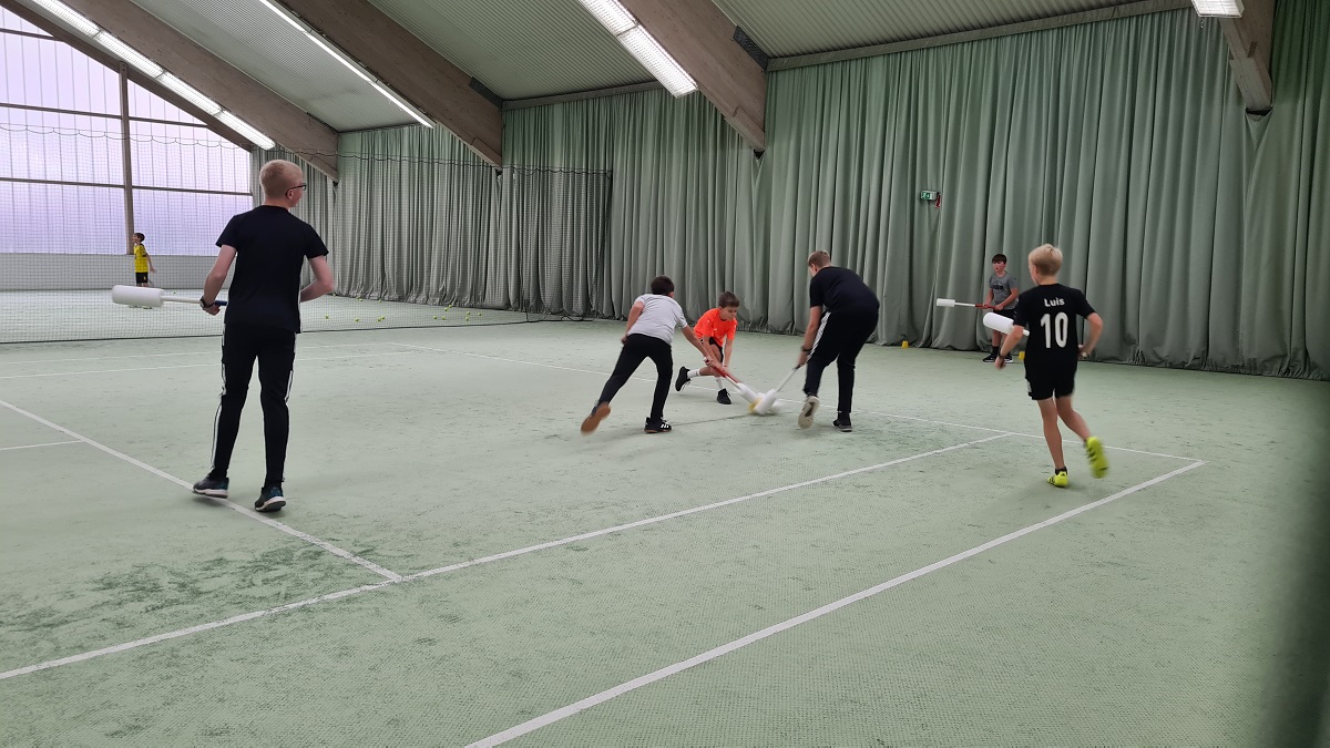 Neu angeschafft hatte der TCO ein Pickleball-Set, ein Spiel mit kurzen Schlägern ohne Besaitung und einem durchlöcherten Ball, das auf der Größe eines Badmintonfeldes gespielt wird. Aus den USA stammend, hat es sich dort als Trendsportart mit mehreren Millionen Spielern etabliert. Für die TCO-Jugend anfänglich sehr gewöhnungsbedürftig, da Grundtechniken des Tennissports – Topspin und Slice – aufgrund der Schlägerbeschaffenheit kaum Wirkung entfalten, entwickelten sich im weiteren Verlauf des Nachmittags insbesondere im „zwei gegen zwei“ spektakuläre Ballwechsel.